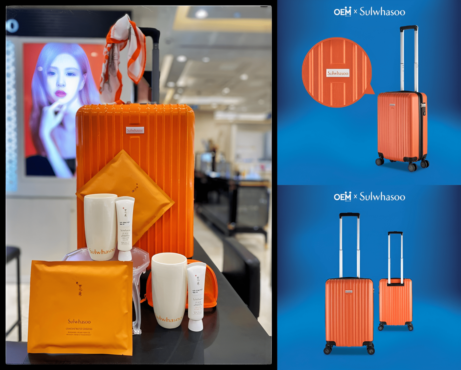 OEM Group sẽ vô cùng phù hợp với phần nghệ thuật của Sulwhasoo với vai trò tái hiện tâm hồn nghệ thuật đó lên quà tặng khuyến mãi của Sulwhasoo. Mỹ phẩm luôn là đồ dùng thiết yếu đối với những ai sử dụng nó, để đảm bảo đạt công dụng hiệu quả nhất. Sulwhasoo đã thể hiện mình là một thương hiệu tâm lí khi không chỉ chú trọng vào việc sản xuất những sản phẩm có kích thước nhỏ gọn, dễ dàng mang theo, mà còn chọn vali làm quà tặng khuyến mãi, tạo sự phù hợp với các tiêu chí du lịch.