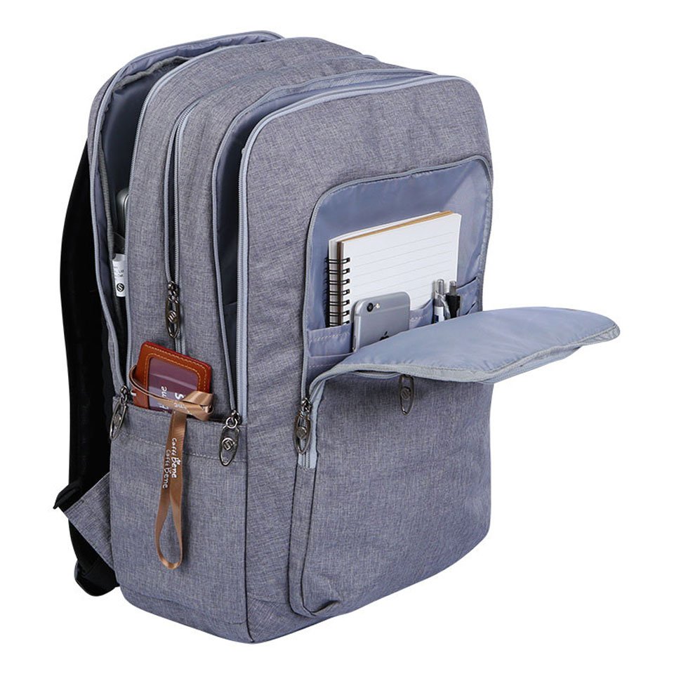 Balo bao gồm 2 ngăn chính và 3 ngăn phụ rộng rãi để chứa các đồ dùng cần thiết, một ngăn riêng biệt có thể đựng vừa Laptop 17” có lớp đệm êm ái.