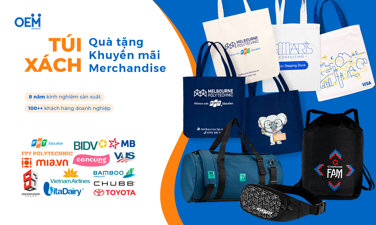 OEM GROUP – 8 NĂM KINH NGHIỆM GIA CÔNG SẢN XUẤT TÚI XÁCH QUÀ TẶNG, TÚI XÁCH BÁN LẺ, TÚI XÁCH QUẢNG CÁO, TÚI XÁCH THƯƠNG HIỆU