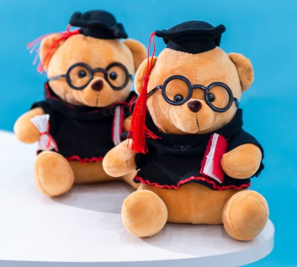Đây chắc hẳn là món quà khá quen thuộc đối với các bạn tân sinh viên khi dự lễ tốt nghiệp. Gấu bông cử nhân là sự lựa chọn an toàn, vì vừa ý nghĩa lại mang lời chúc sâu sắc nhất khi rời ghế nhà trường. Món quà này được thiết kế bởi chú gấu bông đáng yêu, cầm trên tay là tấm bằng cử nhân cùng chiếc áo khoác đồng phục và logo của trường, trên áo còn thuê dòng chữ niên khóa và lời chúc mừng tới tân cử nhân. Nên chú gấu cử nhân chắc chắn là món quà dễ dàng được yêu thích nhất trong mùa tốt nghiệp này.
