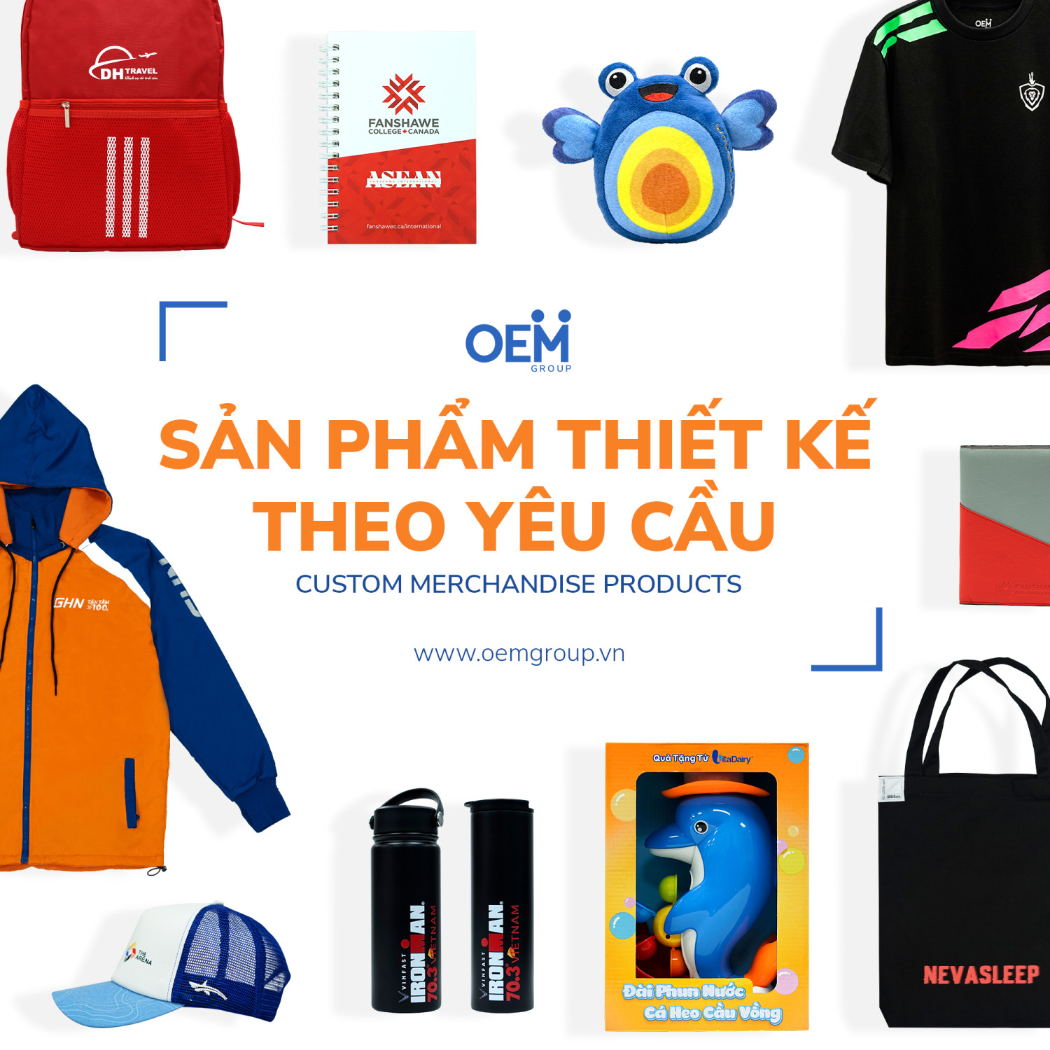 Với sứ mệnh tạo nên những sản phẩm độc đáo và chất lượng, OEM Group tự hào là đối tác tin cậy hàng đầu trong lĩnh vực sản xuất Merchandise, Hàng Khuyến Mãi và Quà Tặng Doanh Nghiệp. Chúng tôi không chỉ là một nhà sản xuất mà còn là người bạn đồng hành đáng tin cậy, luôn đồng tạo và tư vấn để tạo ra những sản phẩm tốt nhất phục vụ cho hơn 100++ thương hiệu cả quốc tế và trong nước với vô số giải pháp quà tặng doanh nghiệp trọn gói, thiết kế và gia công riêng. OEM Group cam kết mang đến sự hài lòng, tạo dựng mối quan hệ dài lâu và luôn đồng hành với các đối tác của mình trong các chiến dịch quà tặng, hàng hóa.