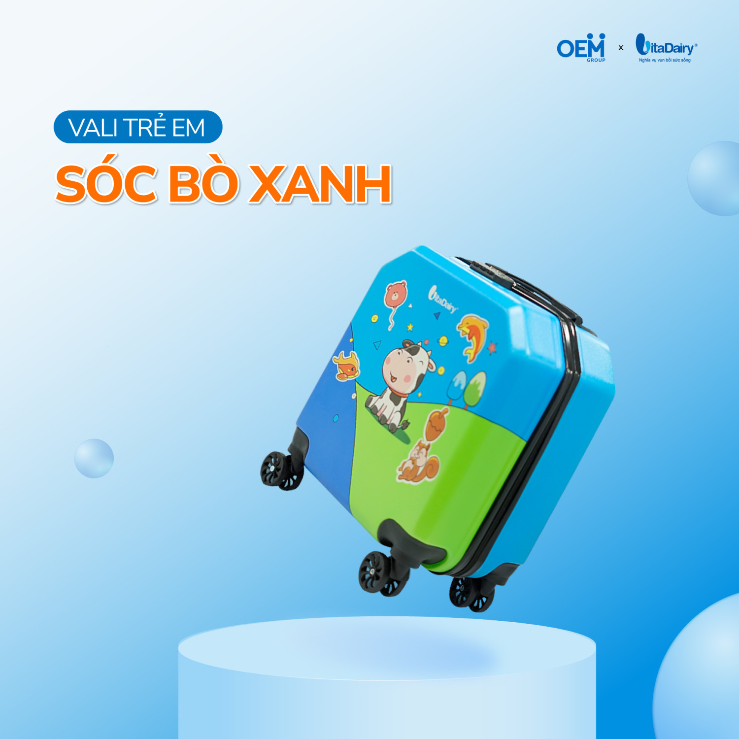 OEM Group có nhiều lựa chọn về vali du lịch hè cho bé như vali Sóc bò xanh, Oggi, Doraemon, Conan,… Vali có tay cầm có thể điều chỉnh, ngăn chính rộng rãi và khóa TSA an toàn để bảo vệ đồ đạc của bé. Vali được thiết kế có 4 bánh xe xoay 360 độ để bé dễ dàng di chuyển trên mọi địa hình. Bánh xe có kích thước lớn và có lớp cao su mềm để giảm tiếng ồn và rung động.