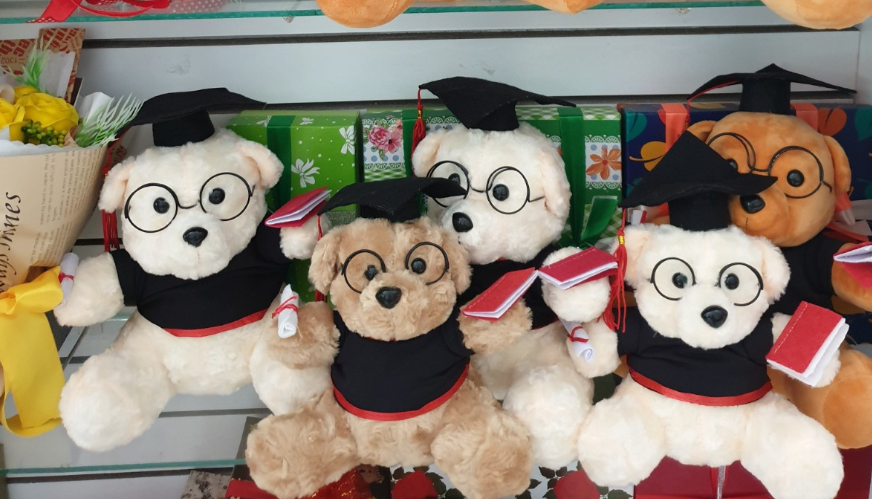 Nếu phải kể đến những món đồ đặc trưng của lễ tốt nghiệp như áo choàng và mũ tốt nghiệp thì phải nhắc đến chú gấu bông tốt nghiệp không bao giờ vắng mặt tại buổi lễ quan trọng này. Gấu bông cử nhân đại diện cho sự tri thức và trí tuệ của con người vừa nhỏ gọn và giữ được lâu, rất tuyệt vời khi có một bó hoa tặng kèm. Bạn cũng có thể in logo thương hiệu của mình vào chú gấu này giúp quà tặng sinh viên vừa có nét riêng vừa là cơ hội quảng bá thương hiệu.