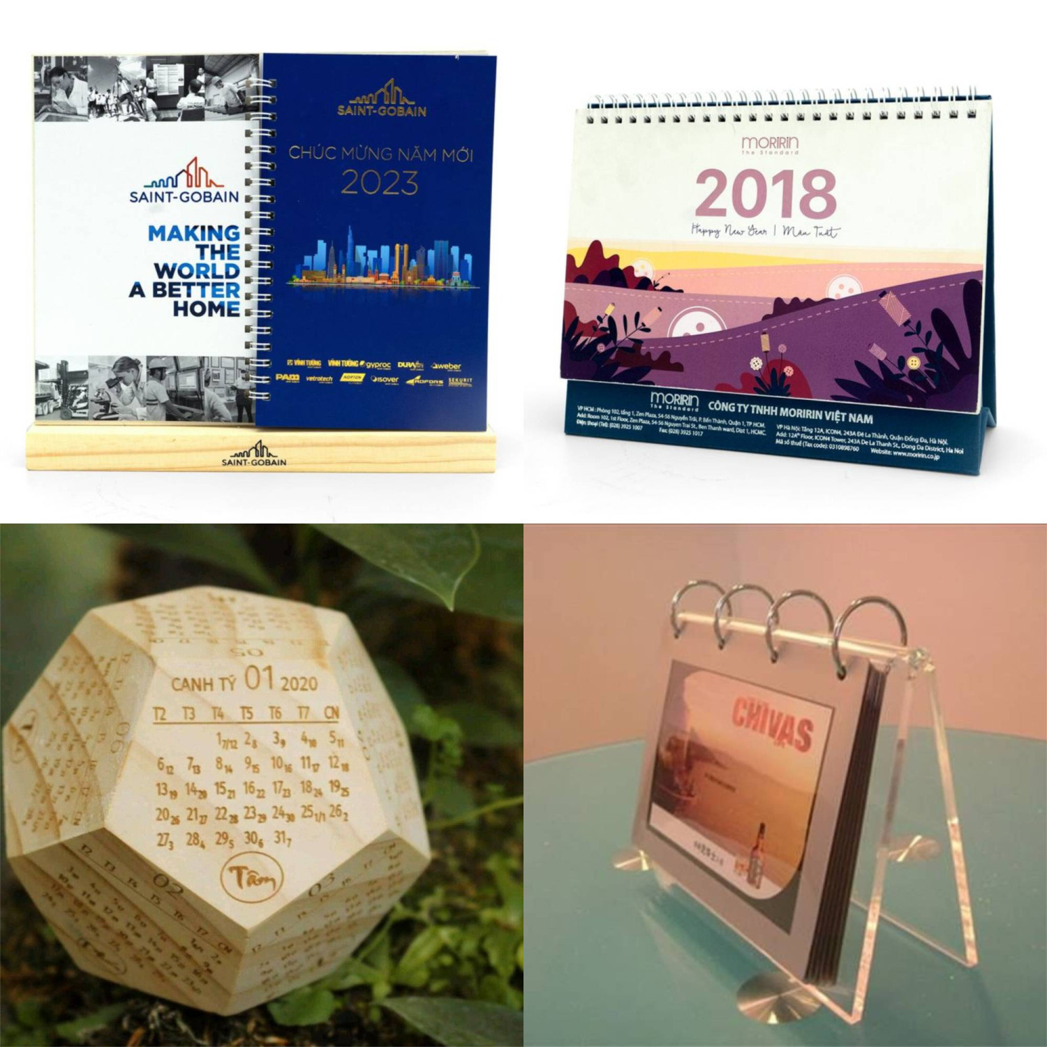 - Gỗ là chất liệu cao cấp được sử dụng để làm lịch treo tường. Gỗ có thể được chạm khắc, sơn hoặc in để tạo ra những mẫu lịch độc đáo, ấn tượng. Lịch gỗ thường có giá thành cao, phù hợp với các doanh nghiệp, tổ chức có ngân sách lớn, là món quà tặng trường học đẹp rất được ưa chuộng.