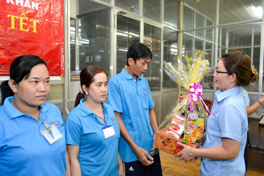 Các doanh nghiệp trao quà tặng công nhân nhân dịp tết