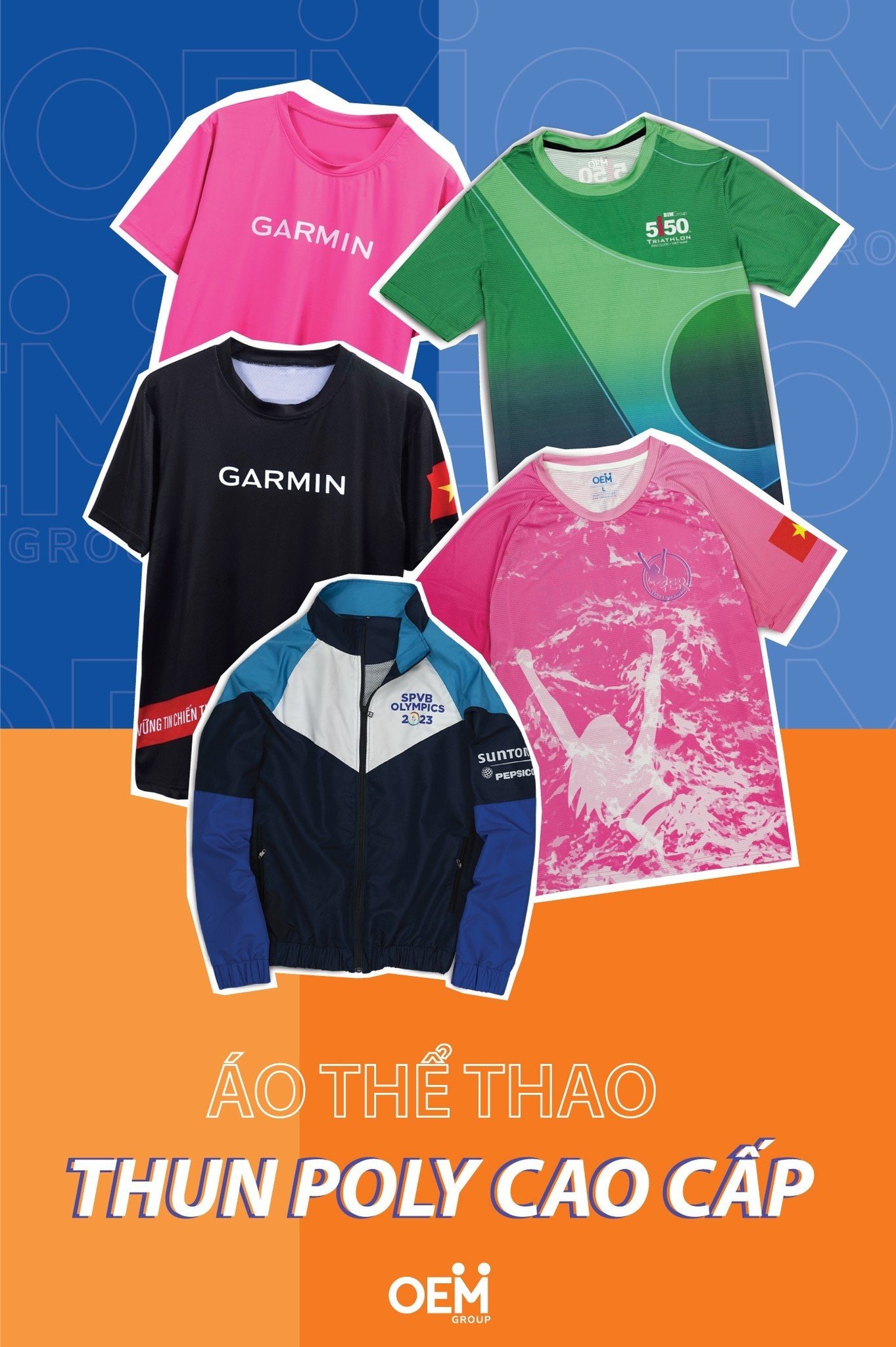 OEM Group nhận thiết kế và sản xuất nhiều loại trang phục khác nhau như áo quần thi đấu marathon, bóng chuyền, bóng đá, bóng rổ, cầu lông,… Chúng được thiết kế với chất liệu co giãn tốt, thấm hút mồ hôi nhanh và có những đặc điểm riêng biệt để đáp ứng nhu cầu vận động của từng môn.
