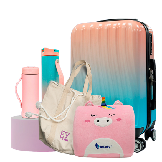 – Vali, thẻ treo hành lí, túi trùm vali, balo, túi phụ kiện, gối tựa cổ, ví đựng passport,…