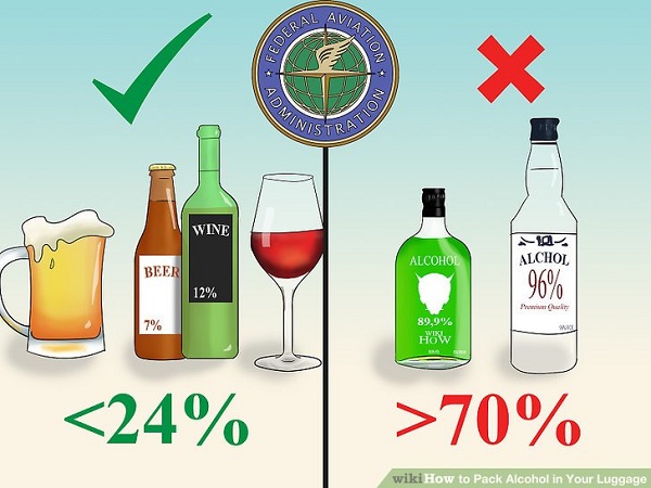 Rượu/đồ uống có cồn với nồng độ cồn 24 – 70% không được mang quá 5 lít.