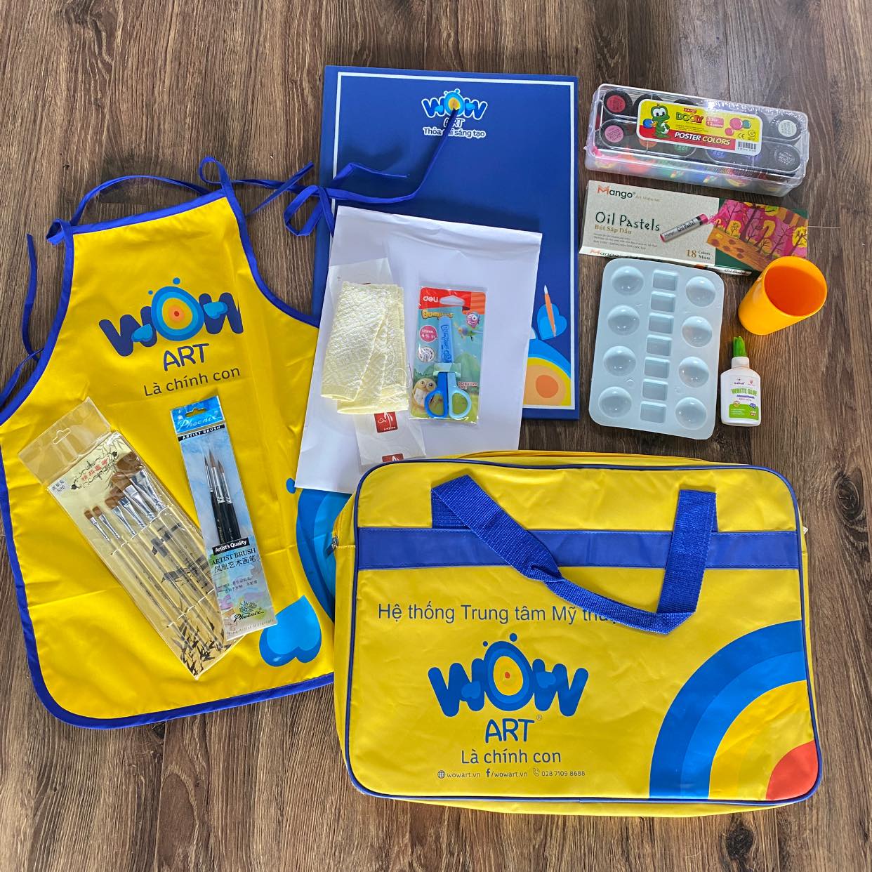 Ngoài ra, bộ đồ dùng còn có thể bao gồm các dụng cụ khác như bút màu, bút chì, kéo, keo, phấn màu,… để giúp bé sáng tạo đa dạng hơn.