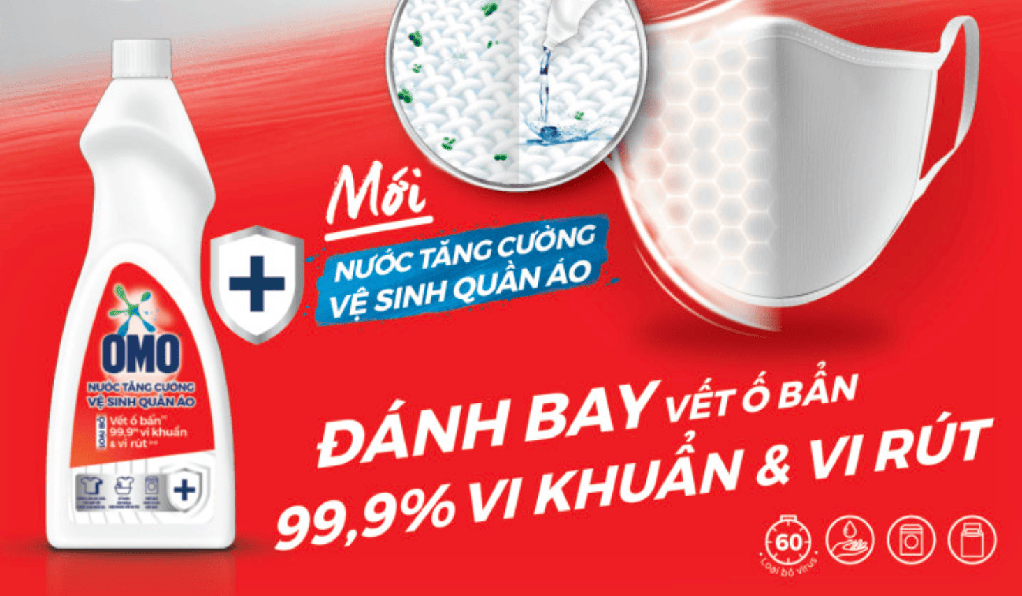 Việc lựa chọn dung dịch giặt phù hợp là điều rất quan trọng kể cả giặt quần áo hay giặt những vật nhỏ như khẩu trang, hiện nay trên thị trường có vô vàn các loại dung dịch giặt xả khác nhau, tuy nhiên tùy theo giá thành thì chất lượng của nước giặt cũng thay đổi. Việc lựa chọn không đúng loại nước giặt có thể khiến cho khẩu trang mau bạc màu và không thể tẩy sạch được những vi khuẩn hay bụi bẩn bám trên khẩu trang. Bạn có thể sử dụng máy giặt hoặc giặt tay đối với khẩu trang, tuy nhiên khuyến khích nên giặt tay vì giặt tay sẽ giữ được form của khẩu trang. OEM Group gợi ý bạn có thể sử dụng các loại nước tăng cường vệ sinh quần áo để giặt khẩu trang được sạch hơn, hiện nay trên thị trường đã có loại nước giặt mới này đến từ OMO, giúp bạn tẩy sạch mọi bụi bẩn. Nước tăng cường vệ sinh quần áo OMO có khả năng diệt khuẩn cao hơn hẳn và không gây hư hại chất vải. Sản phẩm đã được viện Pasteur chứng nhận với khả năng loại bỏ vết ố bẩn hiệu quả cùng với đó là khả năng diệt đến 99.9% vi khuẩn và các loại vi rút gây nguy hại đến sức khỏe của con người. Bên cạnh đó, sản phẩm này còn được đánh giá là sản phẩm tẩy quần áo hữu hiệu trong mùa đại dịch với khả năng khử trùng hiệu quả, được định dạng hoàn hảo cho việc giặt và khử trùng khẩu trang – mối quan tâm hàng đầu của xã hội hiện nay. Gợi ý cho bạn chu trình giặt khẩu trang nếu sử dụng nước tăng cường vệ sinh quần áo: