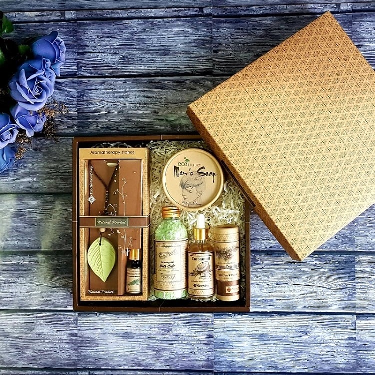 Các spa có thể tặng set quà gồm các sản phẩm chăm sóc da và cơ thể cao cấp như tinh dầu thơm, sữa tắm, kem dưỡng thể và nước hoa để khách hàng có thể tăng thêm trải nghiệm tại nhà, đây là mẫu quà tặng spa ý nghĩa tạo cảm giác thích thú. Hộp quà được thiết kế đẹp mắt và in logo doanh nghiệp, tạo nên sự sang trọng và độc đáo cho khách hàng.