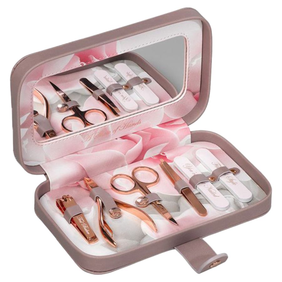 Các phụ kiện làm đẹp hàng đầu như cọ trang điểm, bàn chải tạo kiểu tóc, kẹp tóc, cây cạo lông mày và bông mút trang điểm được đặt trong set quà tặng đặc biệt. Túi quà tặng ngành làm đẹp thẩm mỹ được thiết kế đẹp mắt và in logo doanh nghiệp, tạo nên một ấn tượng chuyên nghiệp và gợi lên sự quan tâm đến chi tiết.