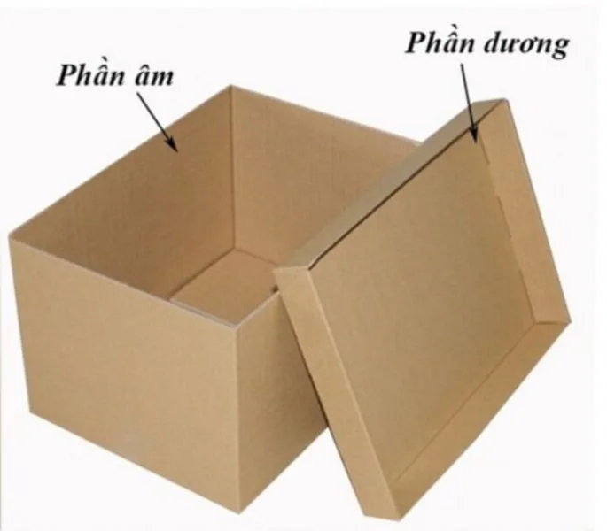 Hộp carton âm dương thường dùng cho quà tặng, sản phẩm cao cấp hoặc hàng cần hình thức đẹp. Cấu trúc gồm phần đáy và nắp rời, tạo cảm giác chắc chắn và thẩm mỹ hơn.