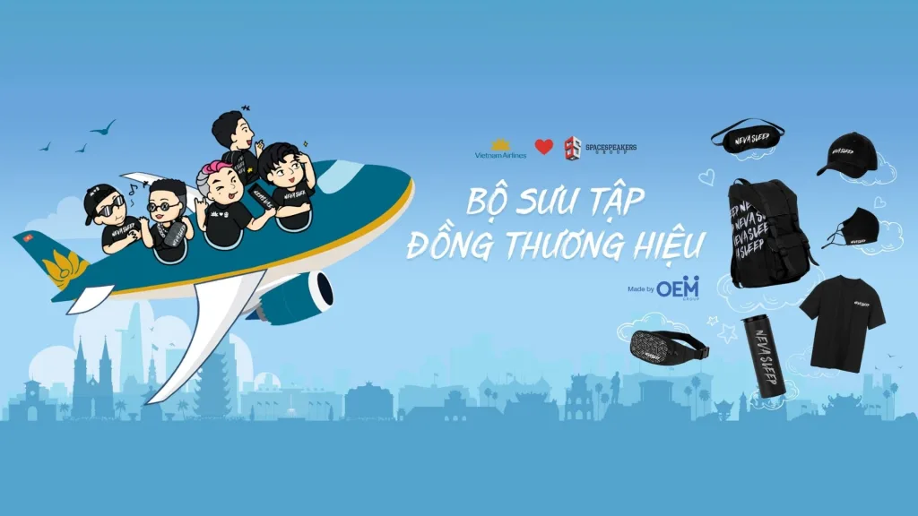 VNA x SpaceSpeakers Group – ấn phẩm đồng thương hiệu: ra mắt trên VNAMALL, OEM Group đảm nhận sản xuất chính; danh mục gồm cả apparel và phụ kiện/đồ dùng.