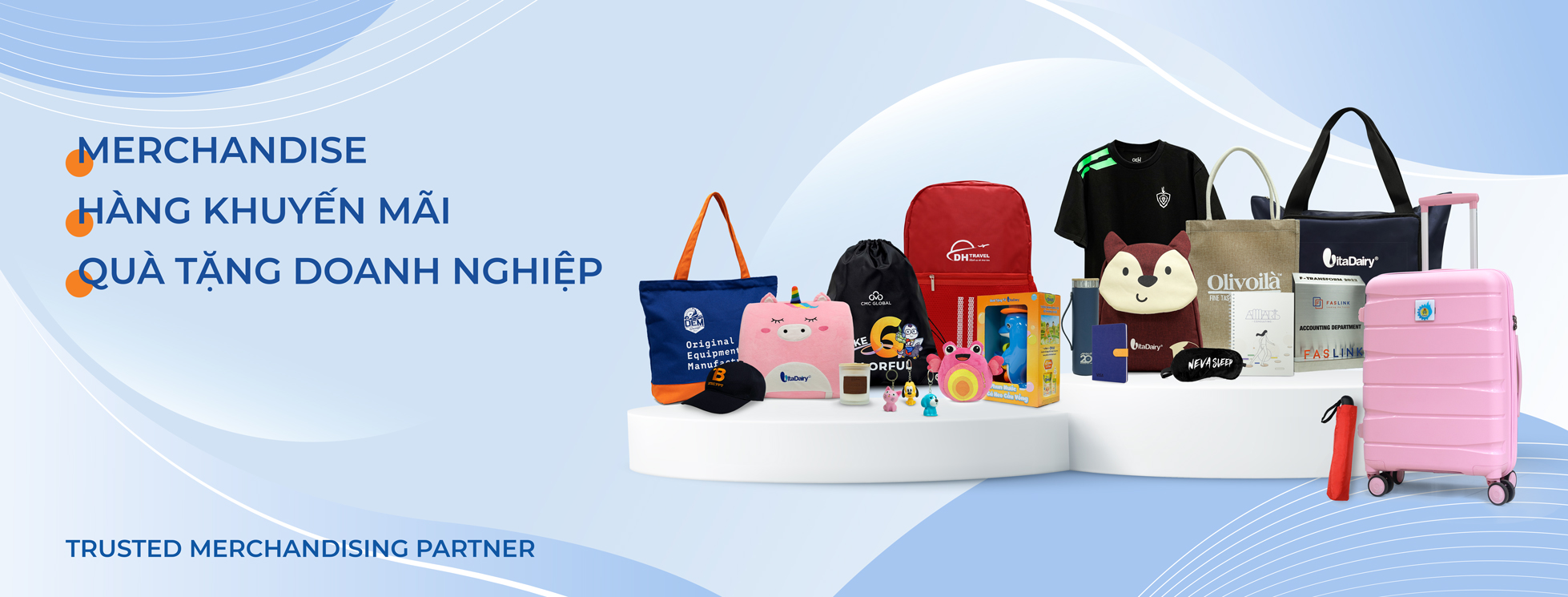 OEM GROUP – đổi tác tin cậy cho mọi nhu cầu sản xuất Merchandise, Hàng Khuyến MãiQuà Tặng Doanh Nghiệp độc đáo, sáng tạo với đa dang sản phẩm như vali, balo – túi xách, trang phục, bình nước, hàng khuyến mãi FMCG, quà biếu,… Sở hữu hơn 7 năm kinh nghiệm sản xuất, phục vụ cho hơn 100++ thương hiệu cả quốc tế và trong nước với vô số giải pháp quà tặng doanh nghiệp trọn gói, thiết kế và gia công riêng, OEM GROUP cam kết màng đến sự hài lòng, tạo dựng mối quan hệ dài lầu và luôn đồng hành với các đối tác của mình trong các chiến dịch quà tặng, hàng hóa.